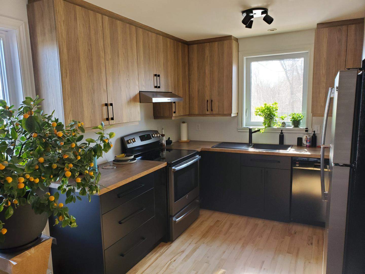 Chaque cuisine est unique et mérite une approche sur mesure pour révéler tout son potentiel et son style. Au-delà de la fabrication d'une cuisine à neuf, nous proposons des alternatives innovantes et écologiques comme le resurfaçage de cuisine ((refacing) pour transformer vos espaces de vie sans tout démolir et à moindre coût. Cette approche offre un excellent compromis sans la démolition complète de votre cuisine, ce qui réduit le temps et les coûts, tout en vous offrant la même qualité, car l'extérieur des caissons sera restauré à neuf avec de nouvelles portes et quincailleries, pour vous donner au final un look à neuf. De plus c'est très écologique !